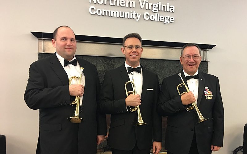 Buglers Jari Villanueva, John Schmitt and Dave Galpern performed with the Virginia Grand Military Band under the direction of Loras