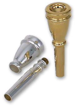 This allows the performer to switch between heavy and standard weights or from trumpet to cornet at will. They can be produced with any of our standard designs or as a custom duplication of your mouthpiece. All are custom made to order. The heavy weighted design gives a darker sound and helps notes to “slot” better. As well, it may allow a performer to play at louder volumes with less distortion of sound quality.